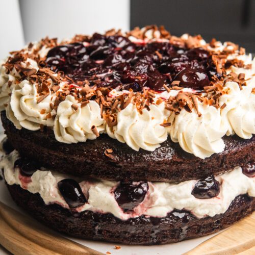 Rich. Fluffy. Fantastic. Imagine tender layers of chocolate cake, juicy cherries, and pillows of sweetened whipped cream all coming together in a perfectly moist and delicious cake. Whether you’re whipping it up as a weeknight treat or for a special celebration, this alcohol-free and approachable version has you covered.