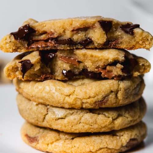 After scooping, these cookies can be put into a freezer safe bag and stored in the freezer for up to 6 months!! Perfect for your late night ooey gooey chocolate chip cookie snacking needs