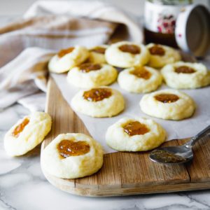 Place 1 tsp of jam onto each cookie. Return cookies to the oven for an additional 5 minutes or until they are soft and lightly golden around the edges.